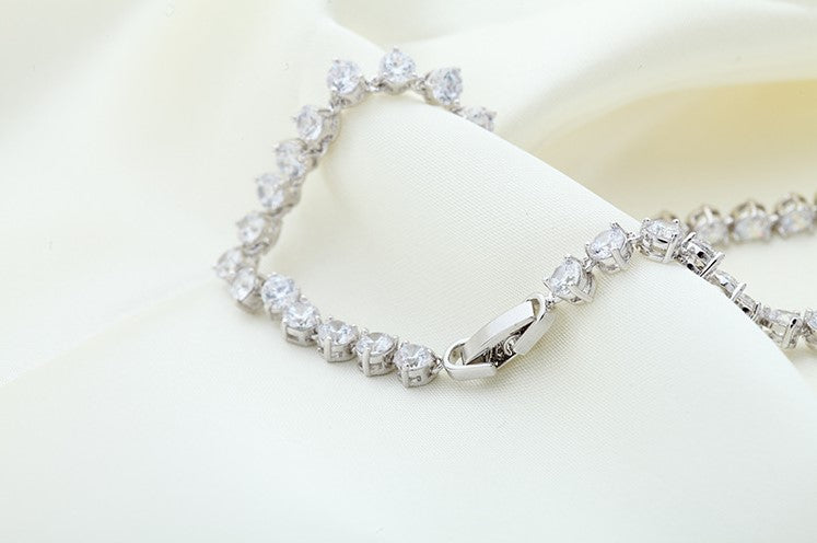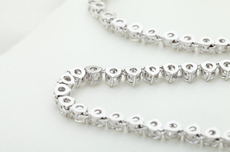 Get the best Tennis Necklace Here! This Classy Solitaire Tennis Necklace is one of Vivere Rosse Exclusives. This delicate piece is made of the finest Cubic Zirconia Diamonds connected together with an 18k White Gold plating copper. This is best for occasional use like corporate parties and social gatherings.- Material: 18K White Gold Plated Copper