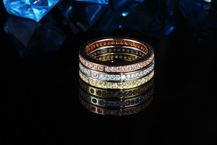 The Eternity Stack Ring Set is a great addition to you collection. Ideally, these rings are worn as a stack set as their color tones harmonize and highlight each other. These can be worn and styled with center pieced rings as a complementary accessory too. These rings are made from a quality 925 sterling silver material and two of these are plated with rose gold and yellow gold vermeil. This is an exquisite jewelry that can be paired with casual and formal outfits.- Material: 925 Sterling Silver
