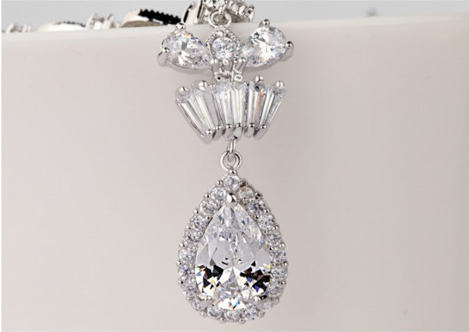 The Paris Spring Luxury necklace possesses a distinct and eye-catching decorative style that makes a lady standout in any formal celebrations. The dangling diamond simulants of this necklace is intricately crafted and studded with small diamonds too, making them shine preciously. Laces of the pendant have a sensual curve motif that gives it a very sexy quality. This is the ornament set waiting for your stylish and foxy lady.